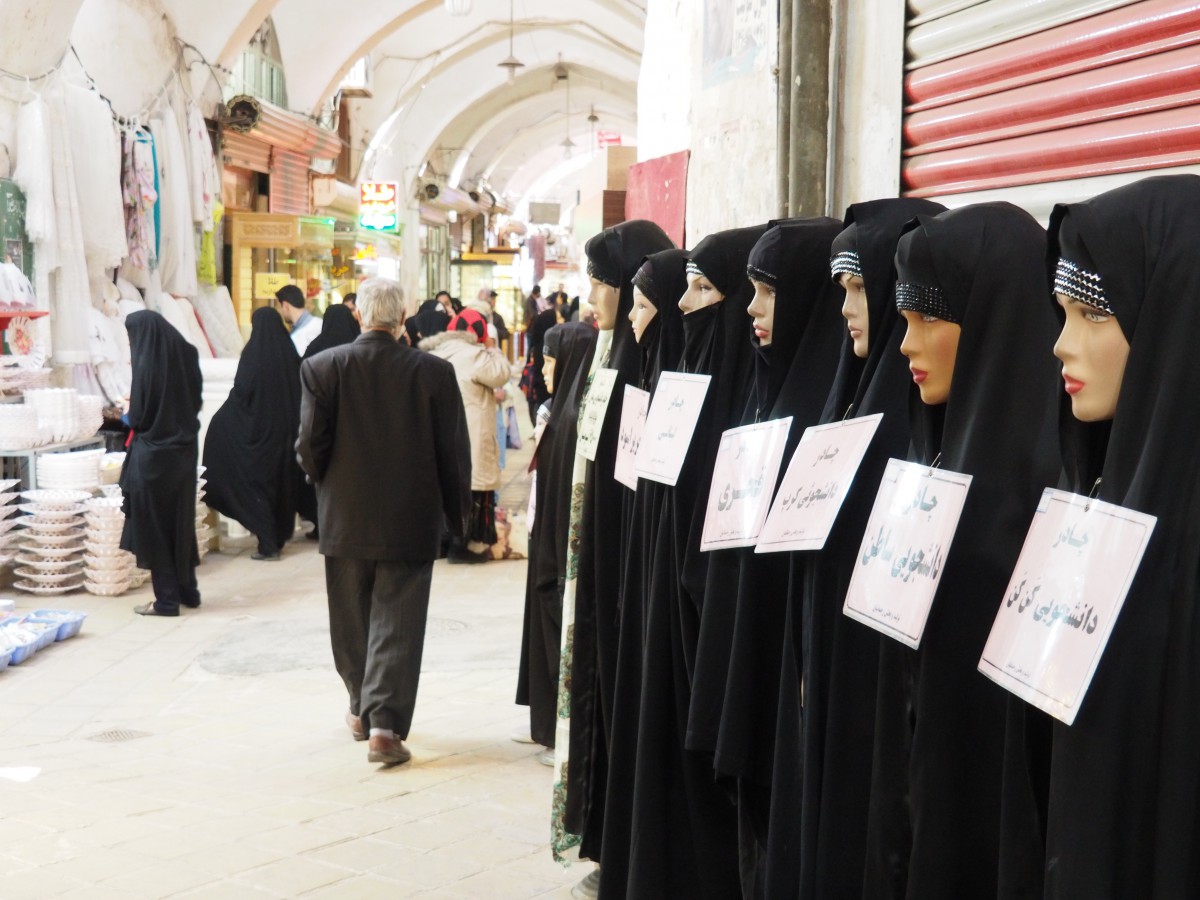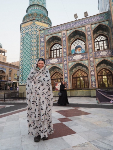 Lange bevor unsere Reise losging, habe ich mich mit der Klamottenwahl im Iran beschäftigt. Der sogenannte Hijab (sprich: hiiiehdschab), der muslimische Dresscode, ist im Iran gesetzlich verpflichtend. Was trage ich, und worauf muss ich als Frau achten? Das mit dem Kopftuch war schnell klar, eins aus Deutschland mitnehmen und dann hier eins kaufen wie es von den Frauen im Iran getragen wird. Das habe ich am Ende nicht gemacht, denn am meisten tragen sie schwarz, die Farbe der Trauer. Da bin ich bei meinen farbigen Tüchern geblieben. Kopftuch trägt man immer in der Öffentlichkeit. Und ich kann euch sagen, wenn man jeden Tag das Kopftuch neu wickelt: es gibt wie „bad hair days“ auch „bad hijab days“, an denen das Tuch einfach nicht halten will. An anderen Tagen kann der Wind noch so wehen und es hält. Rom, 35 Grad, die Frisur hält. Zum Kopftuch dazu soll Frau ein Oberteil und/oder eine Jacke tragen, die bis zur Hälfte des Oberschenkels reicht, also den Allerwertesten bedeckt. Dass der Po so sexy ist, war mir nicht klar. Aber wenn man schon nach wenigen Tagen mal wieder einen Touristen in westlicher Kleidung mit enger Jeans sieht, dann weiß man, dass der feminine Hintern doch heiß sein kann.