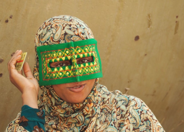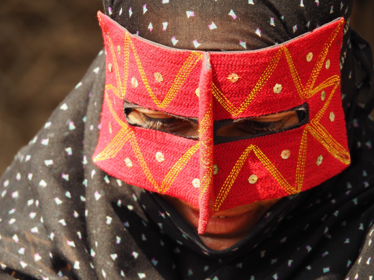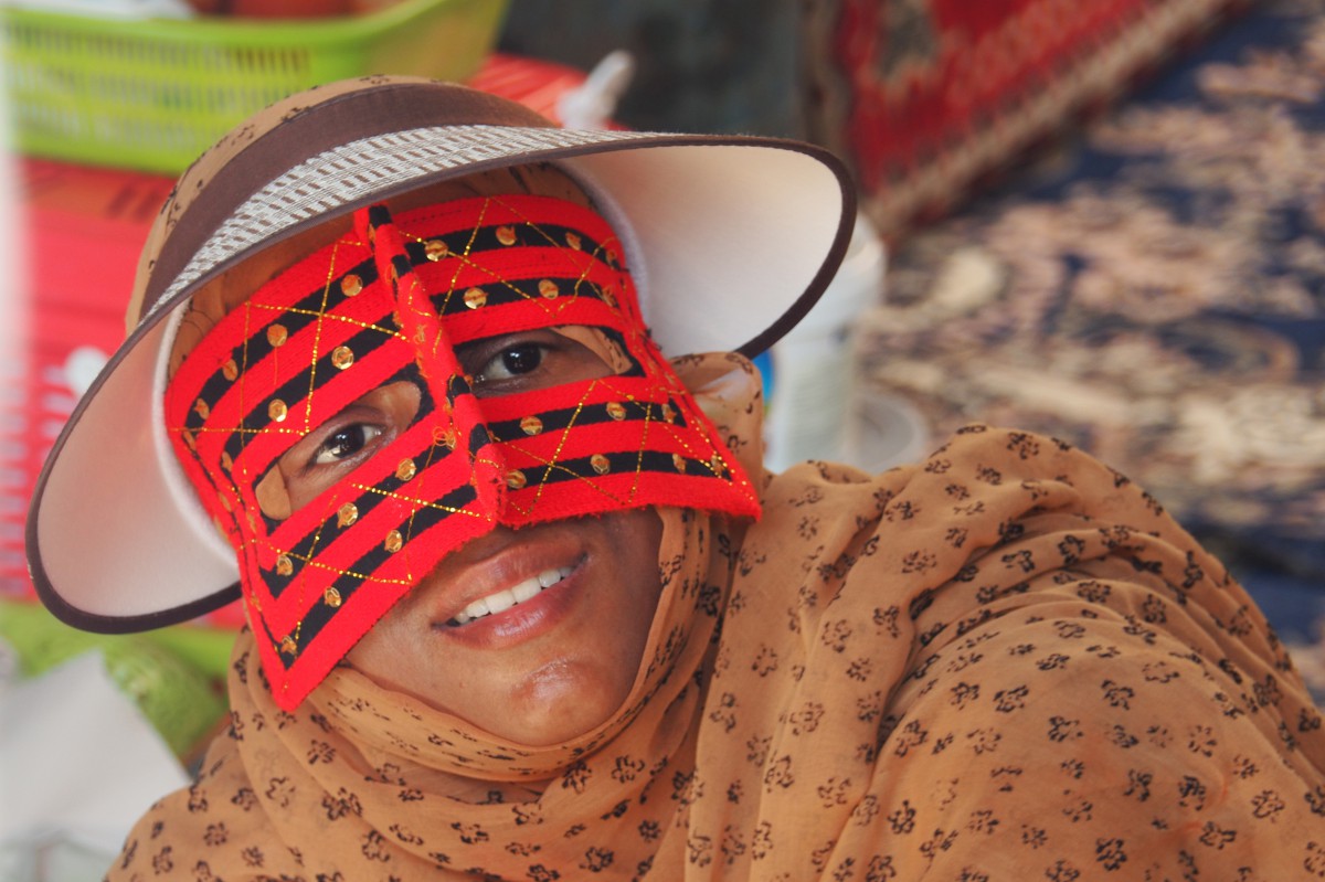 die bunten Masken heissen hier im Iran „pushiye“. Sie werden von traditionellen Frauen im Süden vom Iran jeden Tag ohne besonderen Anlass getragen. Ursprünglich waren sie neben der Verhüllung auch ein guter Sonnenschutz für das Gesicht als es noch keine Sonnencreme gab. Wer in Teheran ein „pushiye“ trägt, ist sehr religiös.