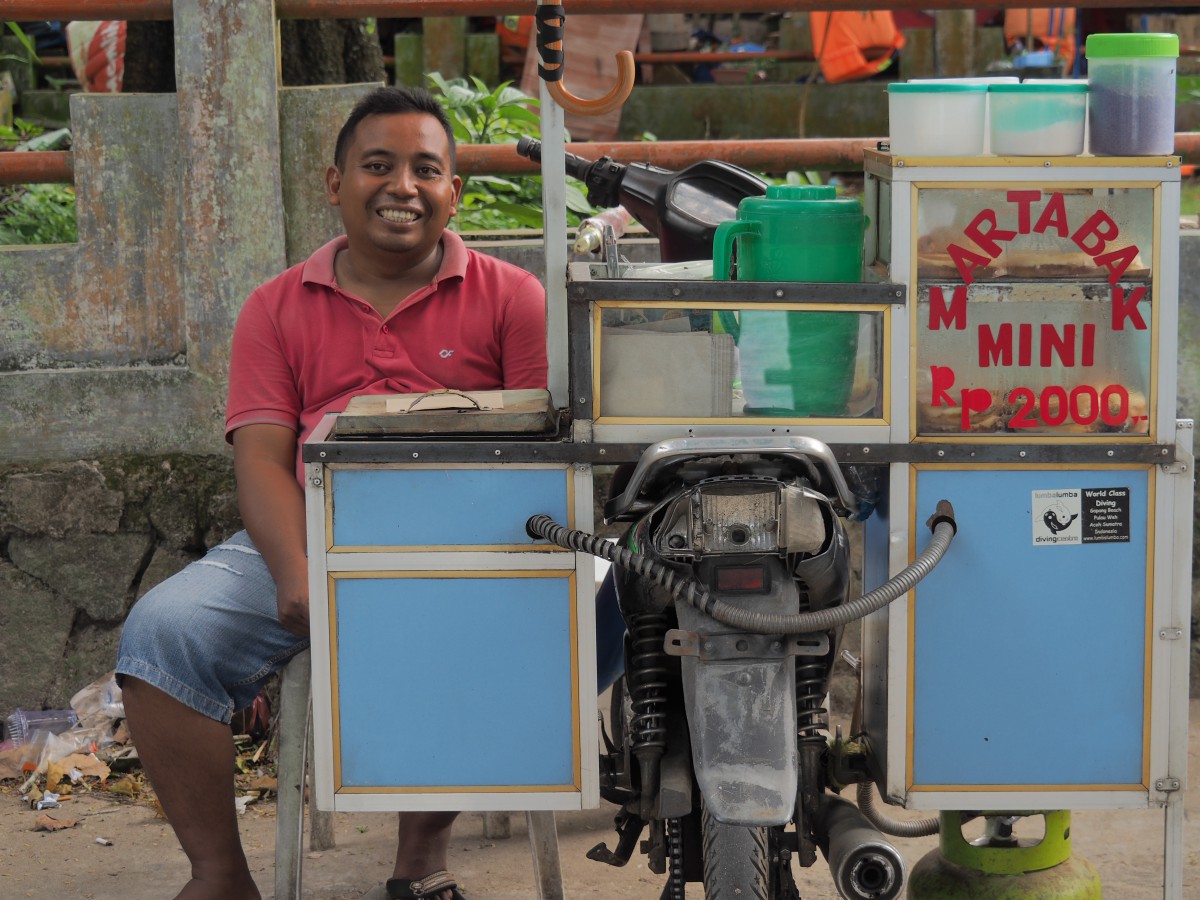Und trotzdem ist Pulau Weh einer der schönsten Orte auf unsere Reise bisher, gerade wegen der Unvollkommenheit. Das ehrliche Lächeln und die grenzenlose Entspanntheit der Einheimischen sind nur zwei Gründe. Hier findet sich die richtige Balance zwischen touristischer Infrastruktur und Originalität. In der Mitte der Insel gibt es noch vorwiegend Regenwald, ein paar Bungalows an den schönsten Stränden der Insel sind die Basis für Wassersport und Erkundungen mit dem Moped. Der Massentourismus ist hier noch nicht angekommen.