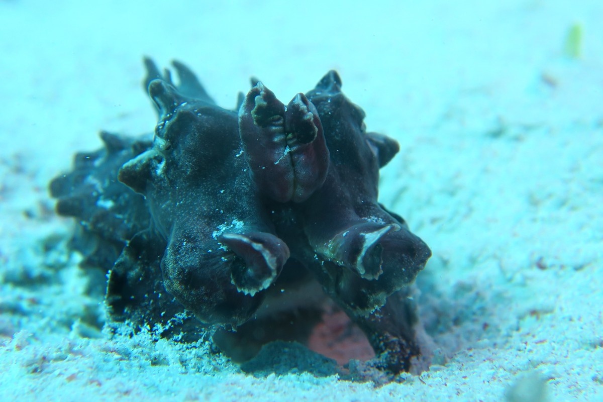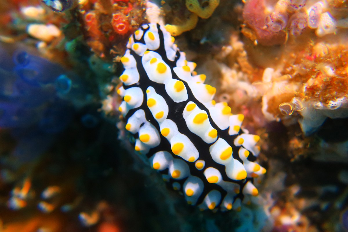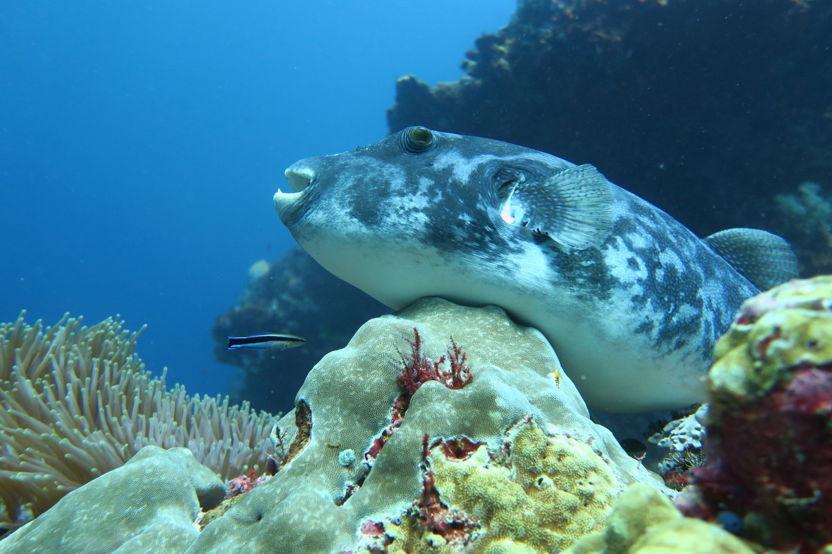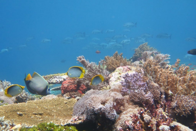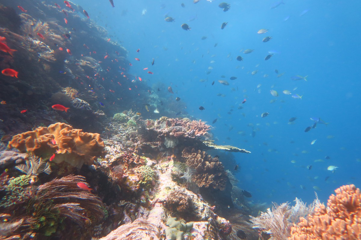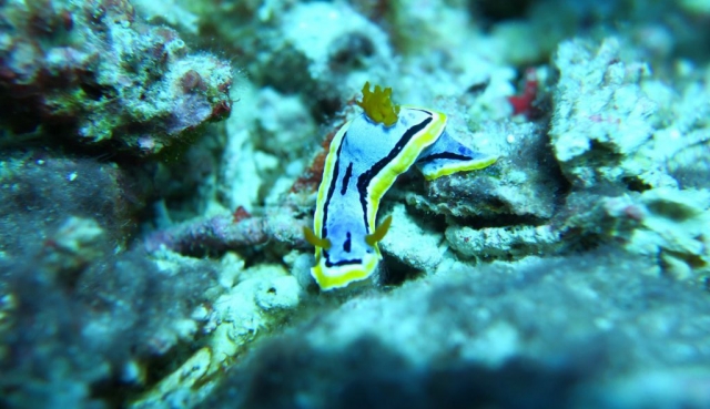 The second day remains just as beautiful and diverse as the first. Due to the mix of cold and warm currents the corals here are not as affected by climate change and we enjoy every dive once again. The drift dives are especially fun. It works like that: hop into the current, drifting along the reef, after one or two kilometers downstream the boat will pick you up again.
