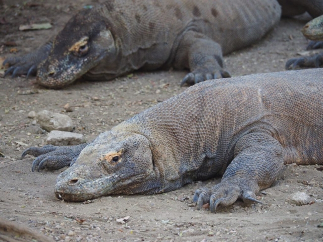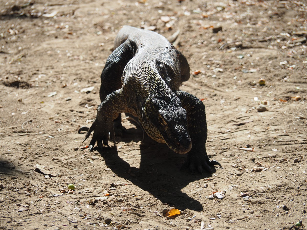 On our last day we visit Rinca island. More than 1000 Komodo dragons still live on this island. Similar to Sumatra the long reach of tourism is evident here as well. We begin our trek and the animals are lying directly at the rancher’s hut ready for taking pictures, lethargic and sleepy in the sun. Are they fed? Most certainly. In that way every tourist is guaranteed to see a Komodo dragon. In the wild we don’t see any one of them anymore. Well that’s good and bad. The animals can, if they are hungry, attack water buffalos and also humans. A few years ago an Indonesian girl was attacked on her way to school. She had diarrhea and went to the bushes. Death is certain due to the infection of the bite wound.